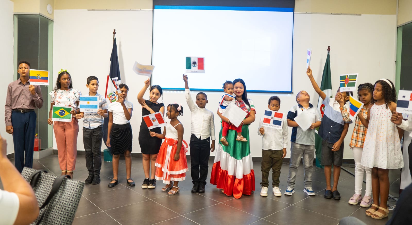 En la juramentación de la directiva municipal de Higüey UA, tuvimos la participación de un grupo de niños y adolescentes quienes recibieron una ovación al unísono de los presentes, estuvieron representando los países de América.